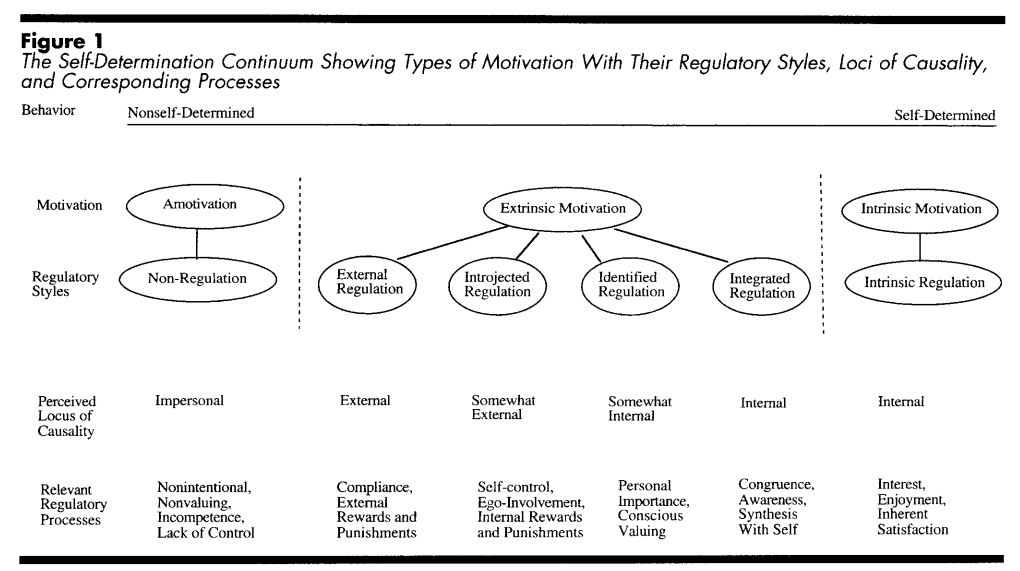 [1] Self-Determination Theory and the Facilitation of Intrinsic Motivation, Social Development, and Well-Being. Ryan and Deci. January 2000. American Psychologist, 65(1) 68-78.